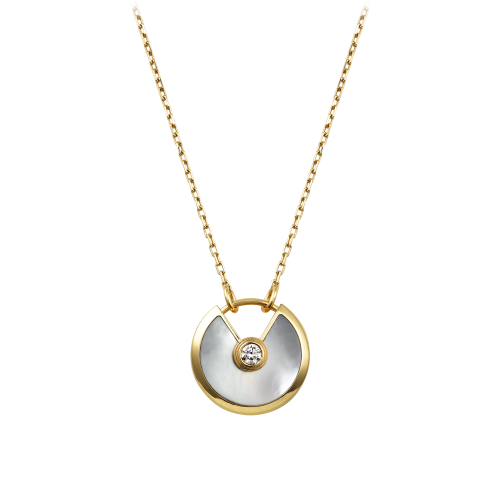 Halskette Amulette De Cartier, Gelbgold, Diamant, weißes Perlmutt