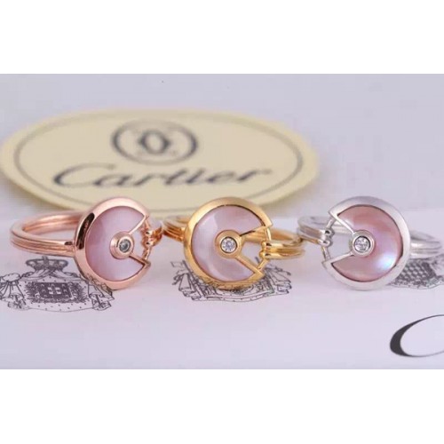 • Amulette de Cartier Pink Opal Ring mit Diamant in Gelbgold, Weißgold und Roségold