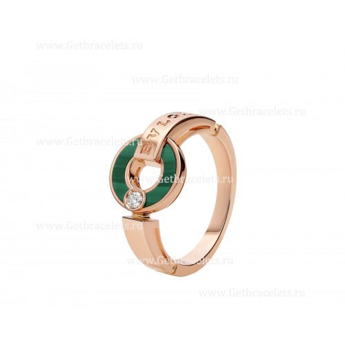 BVLGARI BVLGARI Durchbrochener Ring aus 18 Karat Roségold mit Malachitelementen und einem runden Diamanten im Brillantschliff