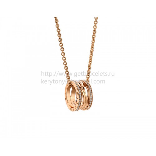 Bvlgari B.zero1 Legend 4-Band-Halskette aus Roségold, besetzt mit Pavé-Diamanten