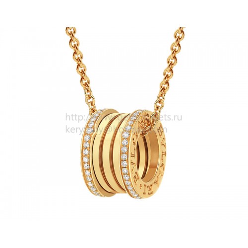 Bvlgari B.zero1 Anhänger mit Kette aus Gelbgold mit Pavé-Diamanten an den Rändern