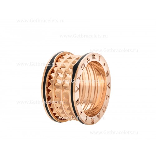 Bvlgari B.zero1 Rock 4-Band-Ring aus 18-karätigem Roségold mit Nietenspirale und schwarzen Keramikeinsätzen an den Rändern