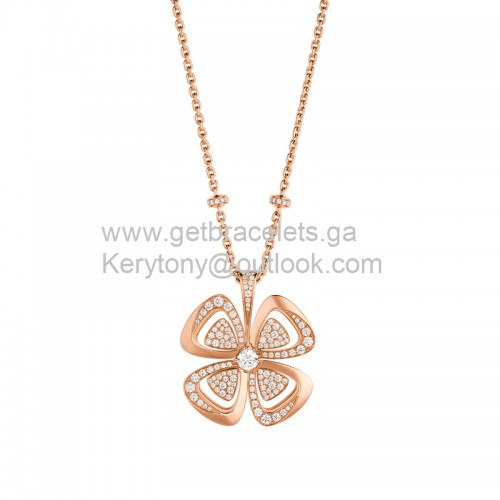 Bvlgari Fiorever Halskette mit vierblättrigen Blumen und Diamanten aus Roségold und Weißgold von hoher Qualität