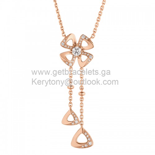 Bvlgari Fiorever-Halskette mit einem runden Diamanten und Pavé-Diamanten aus Roségold und Weißgold im Angebot