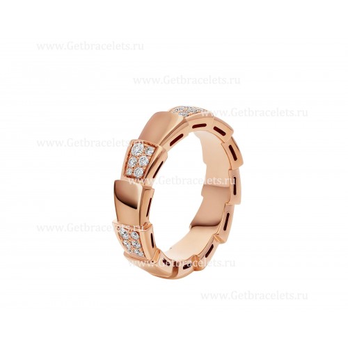 • BVLGARI Mittelgroßer Serpenti Viper-Bandring aus 18 Karat Roségold mit Halbdiamanten