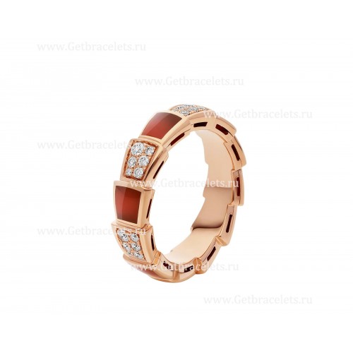 • Bvlgari Medium Serpenti Viper Ring aus 18 Karat Roségold mit Karneolelementen und Pavé-Diamanten
