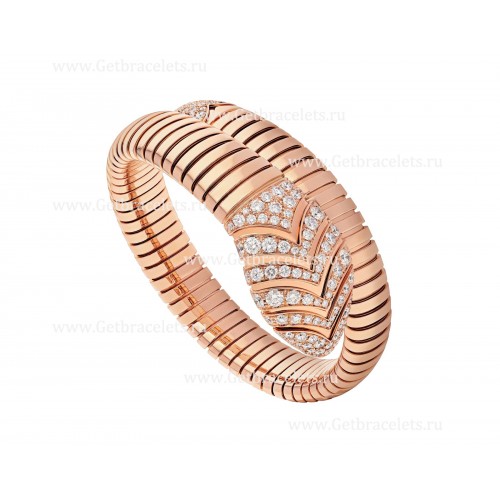 Bvlgari Serpenti Tubogas Single Spiral Armband aus 18 Karat Roségold, besetzt mit Pavé-Diamanten am Kopf und am Schwanz