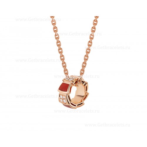 Bvlgari Serpenti Viper Halskette aus 18 Karat Roségold mit Karneolelementen und Pavé-Diamanten am Anhänger