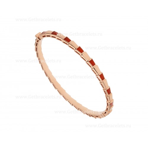 Bvlgari Serpenti Viper dünner Armreif aus 18 Karat Roségold, besetzt mit Karneolelementen