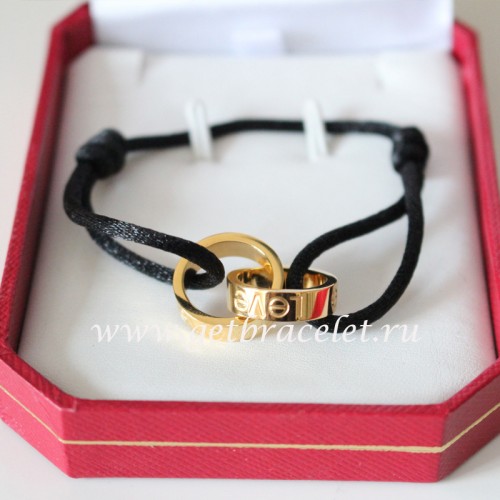 Cartier Double Ring Love Armband Gelbgold Schwarzes Seil