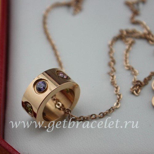 Cartier Roségold-Halskette mit bunten Diamanten