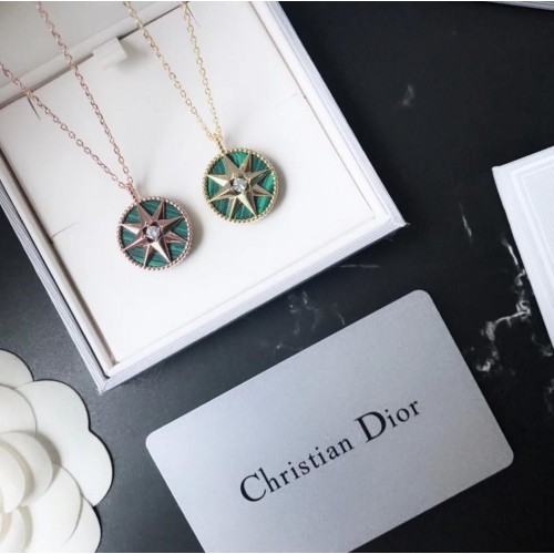 Christian Dior Rose Des Vents Damen-Halskette mit grünem achtzackigem Stern-Anhänger und Diamanten, Gelbgold/Roségold