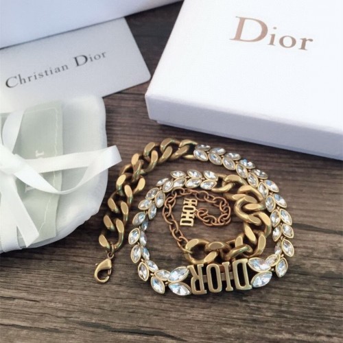 Dior DIOR Logo-Charm, dicke Kette, Marquise-Diamant, Damen-Halskette, Antik-Messing, weißer Kristall, imitiert