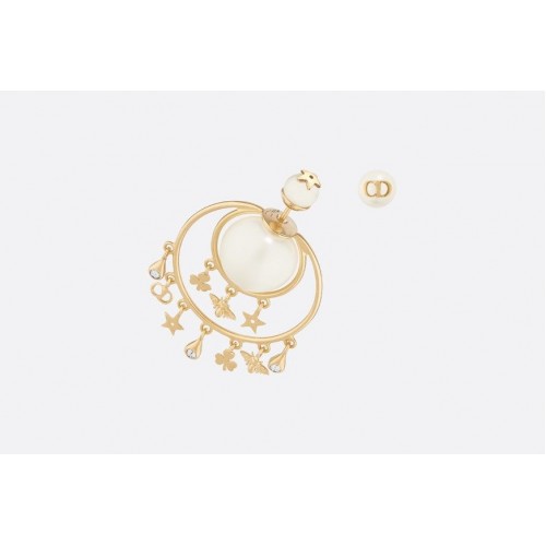 • Dior Tribales Gelbgold-Ohrringe mit Blumen-/Bienen-/Stern-/CD-Anhänger für Damen, asymmetrische Perlenohrringe
