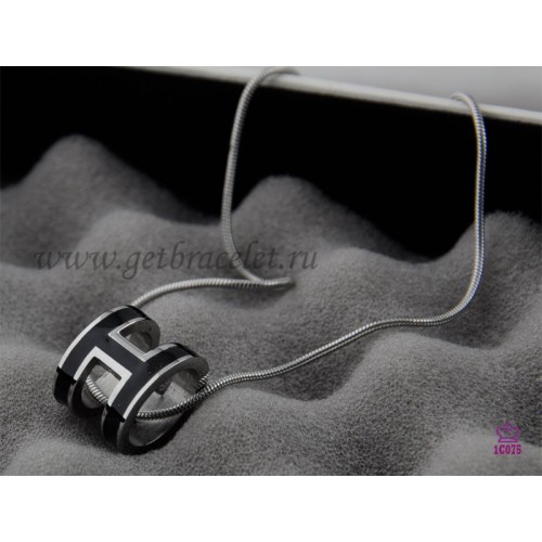 Hermes 3D Pop &#8220;H&#8221; Logo Snake Bone Black Halskette aus Weißgold