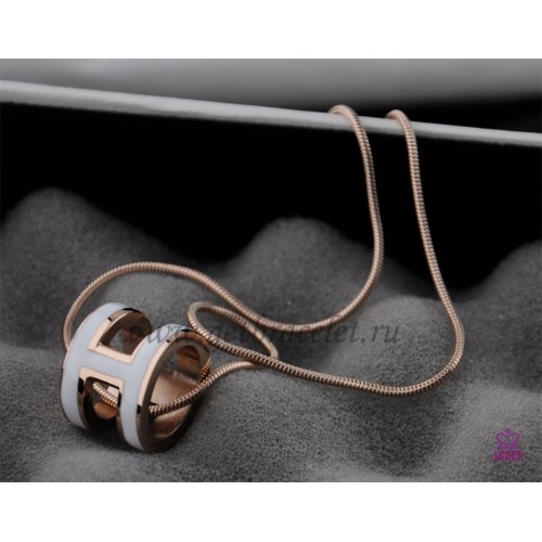 Hermes 3D Pop “H” Logo Snake Bone White Halskette aus Roségold