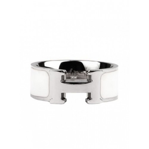 Hermès-Emaille-Clic-H-Ring aus 18-karätigem Weißgold mit Weiß