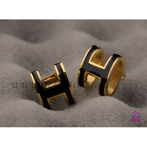 Hermes Pop H Schwarze Ohrringe aus Gelbgold