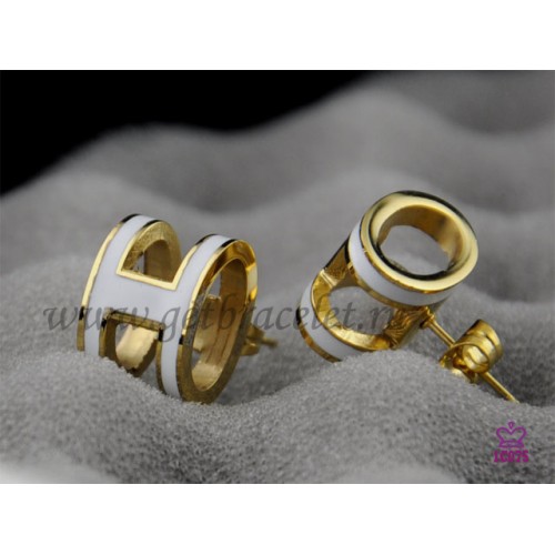 Hermes Pop H Weiße Ohrringe aus Gelbgold