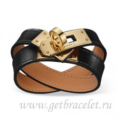 Hermes Rivale Double Wrap Armband Schwarz mit Gold