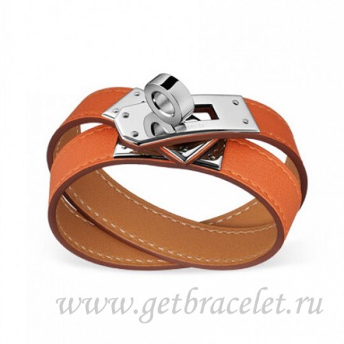 Hermes Rivale Double Wrap Armband Orange mit Silber