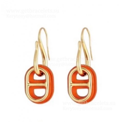 Hermes Swift OMaillon Ohrringe Gelbgold mit Leder Orange/Weiß