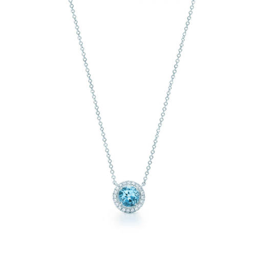 Tiffany Soleste Halskette, Sterlingsilber, runder blauer Diamant-Anhänger, Schmuck