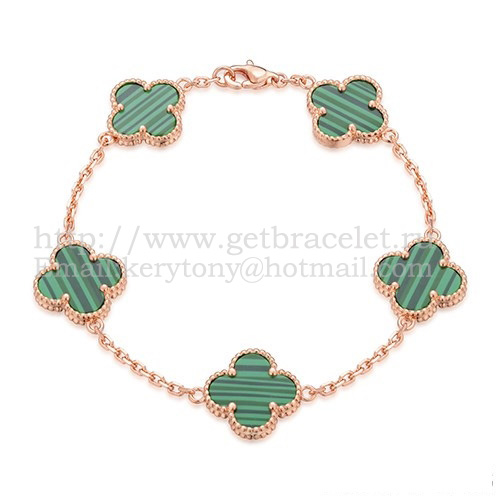 Van Cleef Arpels Alhambra Armband 5 Motive Roségold mit Malachit-Perlmutt
