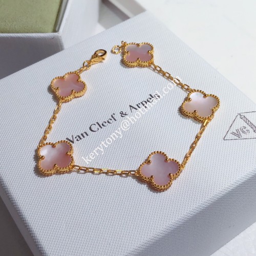 Van Cleef Arpels Alhambra Armband 5 Motive Roségold mit rosa Perlmuttfeder