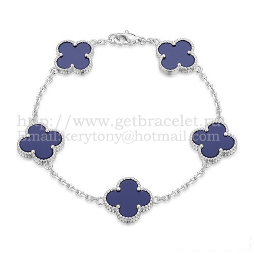 Van Cleef Arpels Alhambra Armband 5 Motive Weißgold mit Lapislazuli-Perlmutt