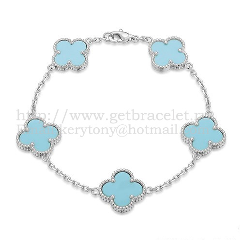 Van Cleef Arpels Alhambra Armband 5 Motive Weißgold mit türkisfarbenem Perlmutt
