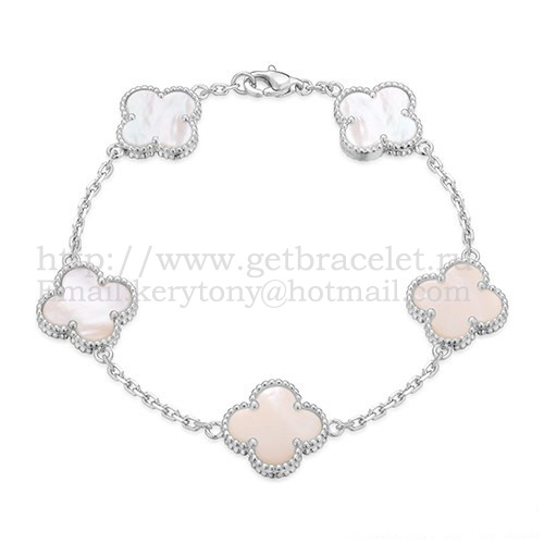 Van Cleef Arpels Alhambra Armband 5 Motive Weißgold mit weißem Perlmutt