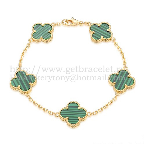Van Cleef Arpels Alhambra Armband 5 Motive Gelbgold mit Malachit-Perlmutt