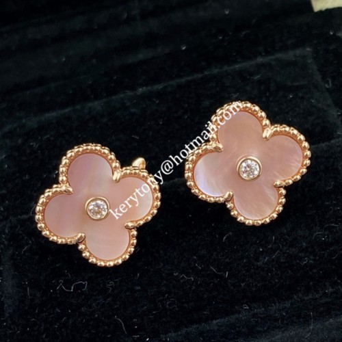 Van Cleef Arpels Alhambra Ohrring aus Roségold mit rosa Perlmutt und Diamanten