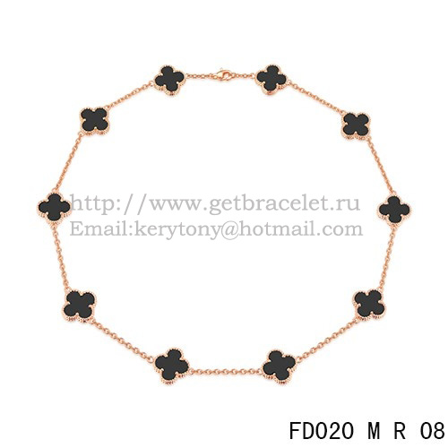• Van Cleef Arpels Alhambra-Halskette, Roségold, 10 Motive, schwarzer Achat, Perlmutt, 45 cm