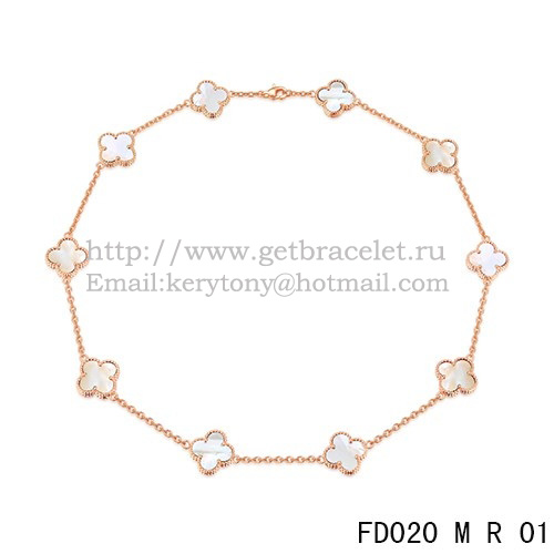 Van Cleef Arpels Alhambra Halskette Roségold 10 Motive Weißes Perlmutt 45 cm