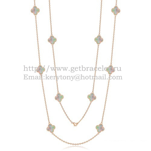 Van Cleef Arpels Alhambra-Halskette aus Roségold mit 10 Motiven und grauem Perlmutt