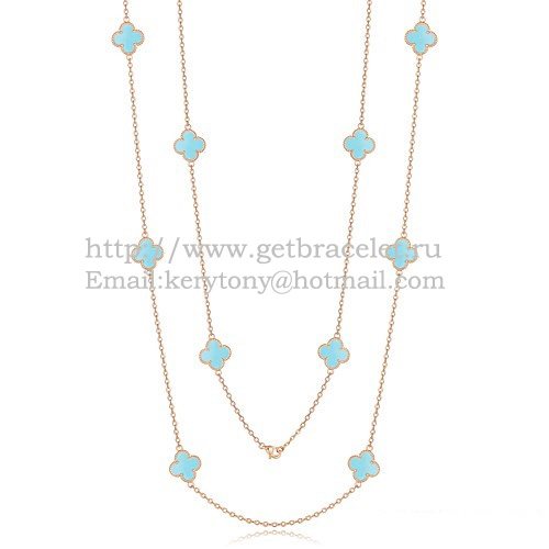Van Cleef Arpels Alhambra-Halskette aus Roségold mit 10 Motiven und türkisfarbenem Perlmutt
