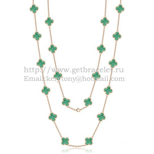 Van Cleef Arpels Alhambra Halskette aus Roségold, 20 Motive mit Malachit-Perlmutt