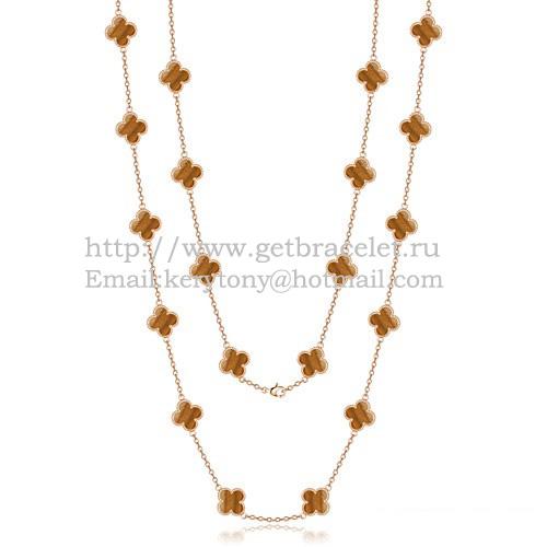 Van Cleef Arpels Alhambra Halskette aus Roségold mit 20 Motiven und Tigerauge-Perlmutt