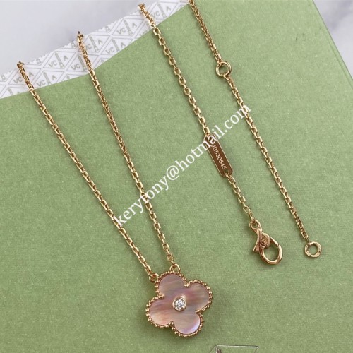Van Cleef Arpels Alhambra Halskette aus Roségold mit rosa Perlmutt und Diamant