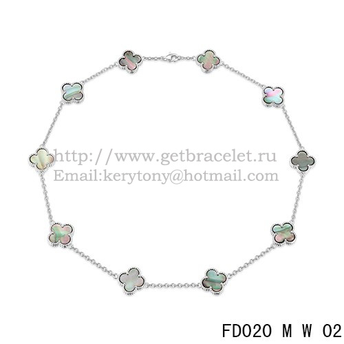 Van Cleef Arpels Alhambra Halskette Weißgold 10 Motive Graues Perlmutt 45 cm
