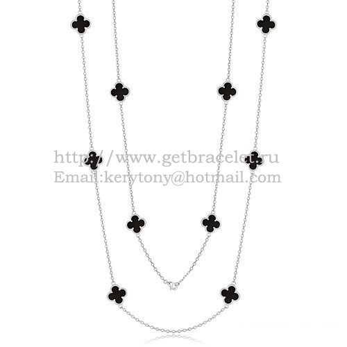 Van Cleef Arpels Alhambra Halskette Weißgold 10 Motive mit schwarzem Achat-Perlmutt