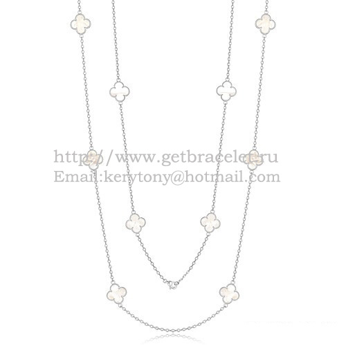 Van Cleef Arpels Alhambra Halskette Weißgold 10 Motive mit weißem Perlmutt