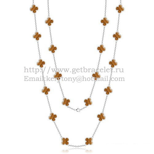 Van Cleef Arpels Alhambra Halskette Weißgold 20 Motive mit Tigerauge-Perlmutt
