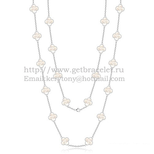 Van Cleef Arpels Alhambra Halskette Weißgold 20 Motive mit weißem Perlmutt