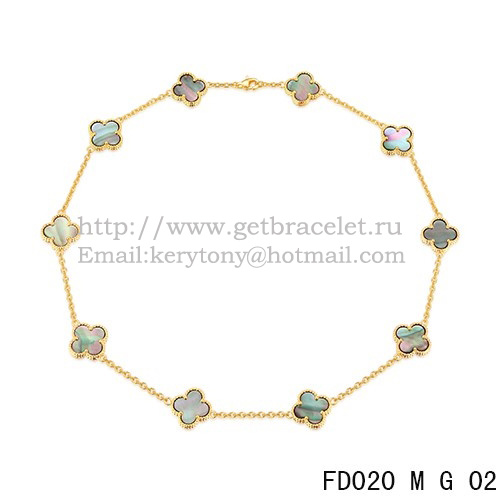Van Cleef Arpels Alhambra Halskette Gelbgold 10 Motive Graues Perlmutt 45 cm