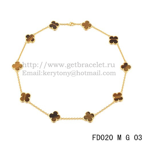 Van Cleef Arpels Alhambra Halskette Gelbgold 10 Motive Tigerauge Perlmutt 45 cm