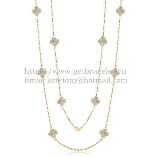 Van Cleef Arpels Alhambra Halskette Gelbgold 10 Motive mit grauem Perlmutt