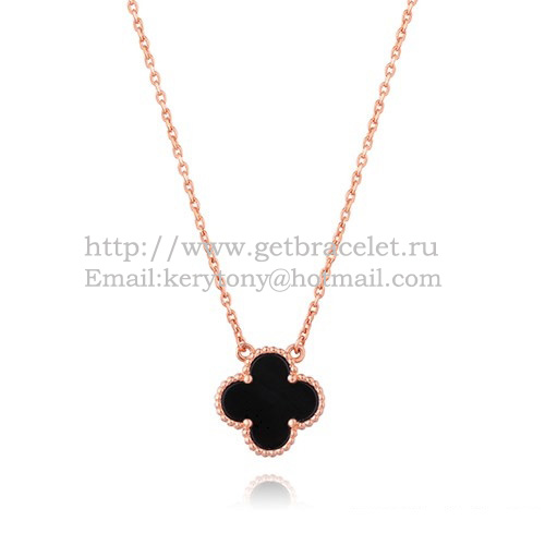 Van Cleef Arpels Alhambra-Anhänger aus Roségold mit schwarzem Achat-Perlmutt, 15 mm